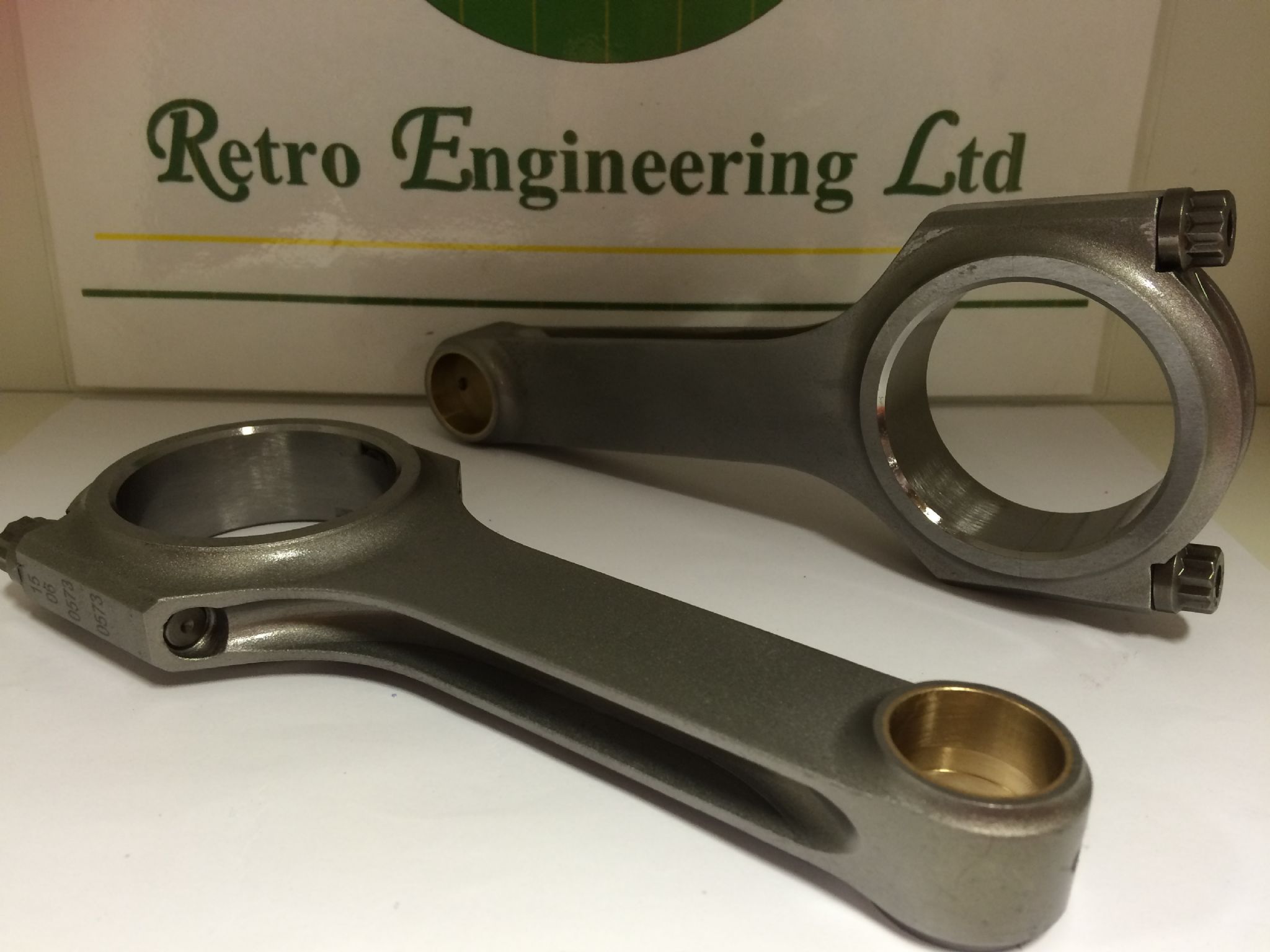Set of H beam steel rods with ARP 2000 3/8" bolts 144mm length 52mm big end dia 22mm little end Width 23.9mm Bearing type – BMW S14