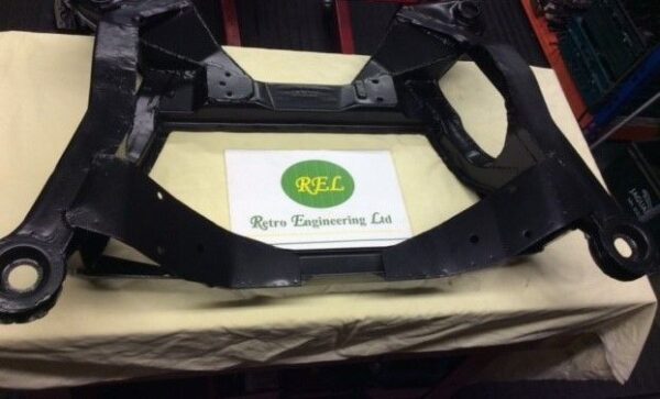 Exchange front sub-frame – bead blasted, strengthened and modified to take heavy duty engine mounts and quick gearbox removal. Powder coated satin